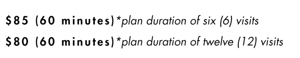 Optional pre-authorized plans are available for returning clients, where a reduced rate per massage treatment is automatically charged in advance to the credit card on your file. More information about pre-authorized plans can be found here
